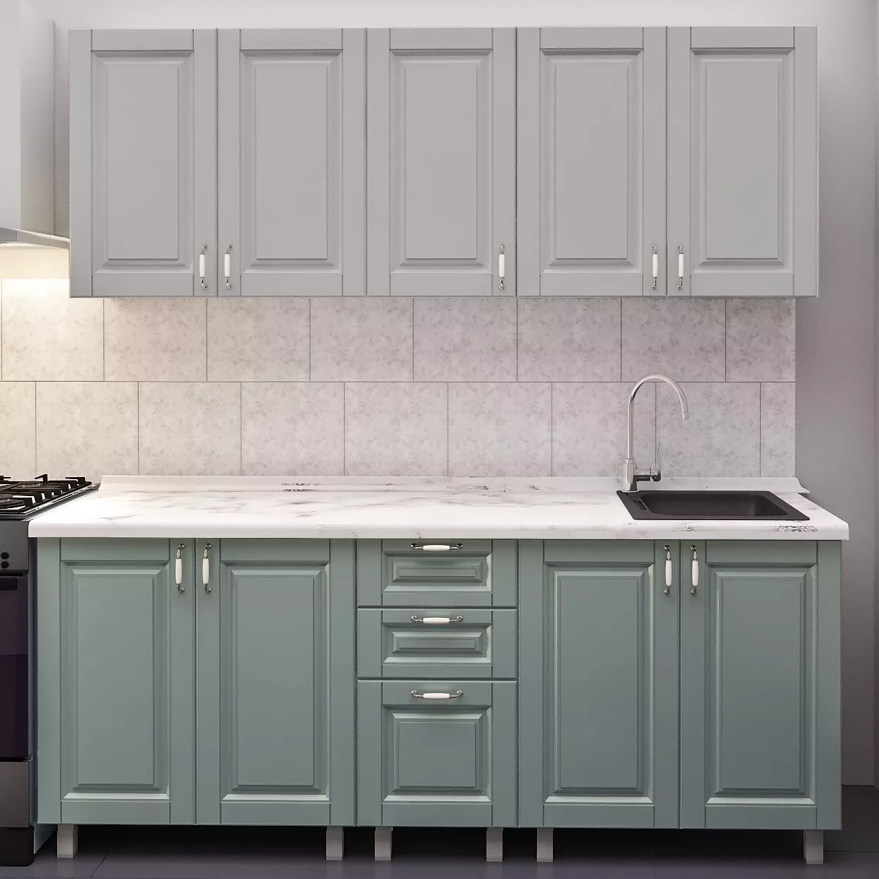 Кухня Bafimob Лена 2.0 м, МДФ крашенный, фасад Классик, Светло серый-матовый/Салатовый-матовый