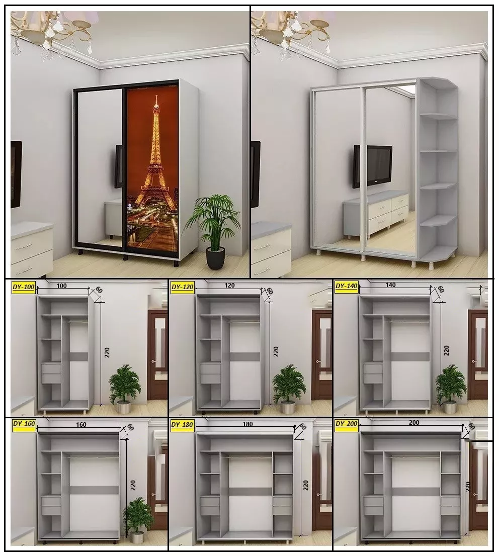 Шкаф купе Bafimob ДY-160 (160x220x60) Фотопечать 1/2(дв), Светло серый