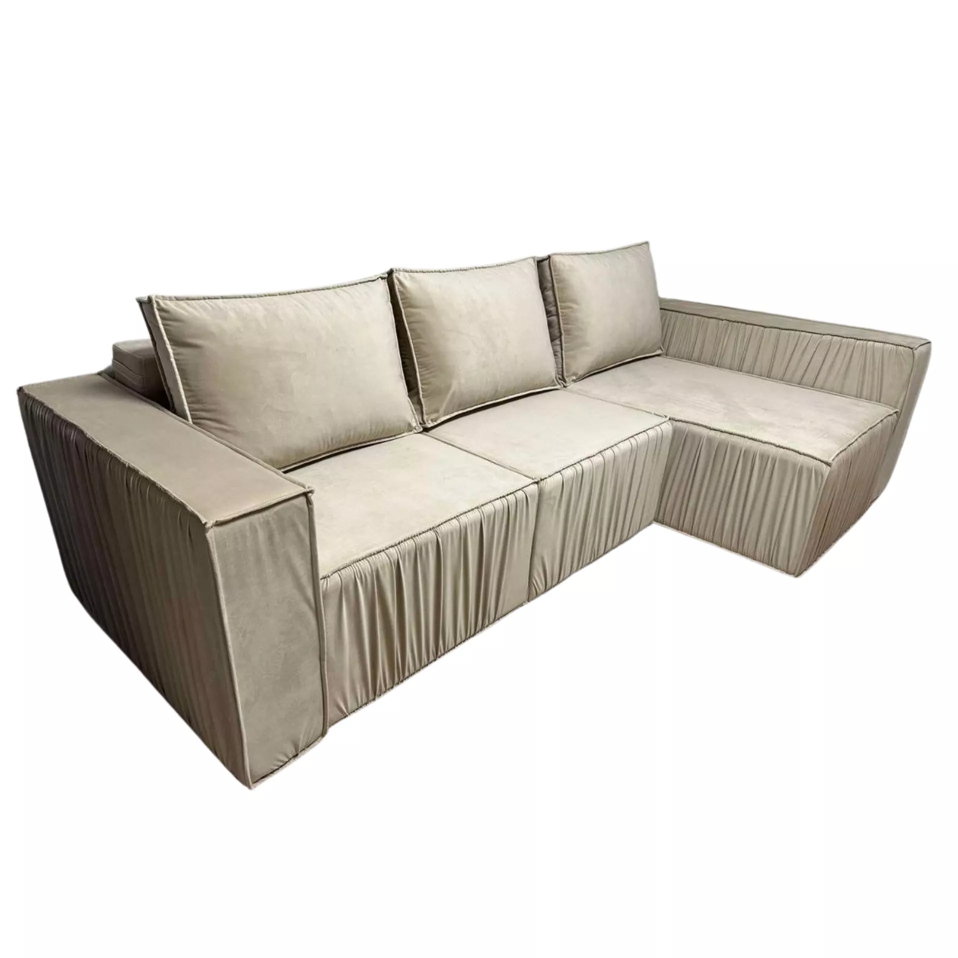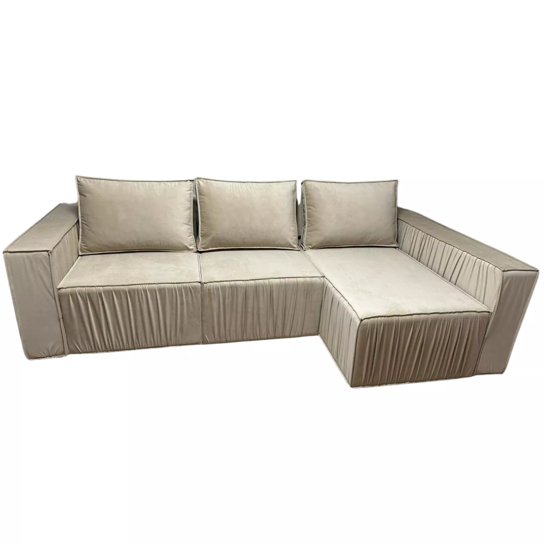 Диван угловой Art Lux E3 (2.5x1.5) складки из ткани, один подлокотник длинный, Бежевый