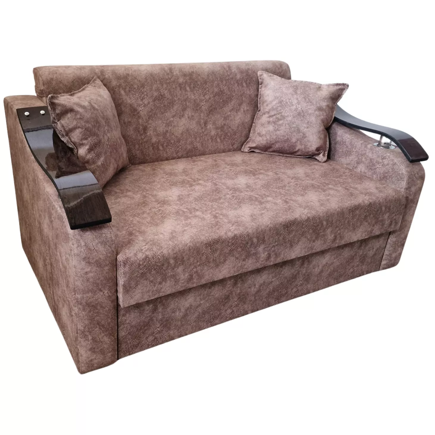 Диван прямой Art Lux N2 (0.83x1.87) подлокотники деревянные волна, Коричневый