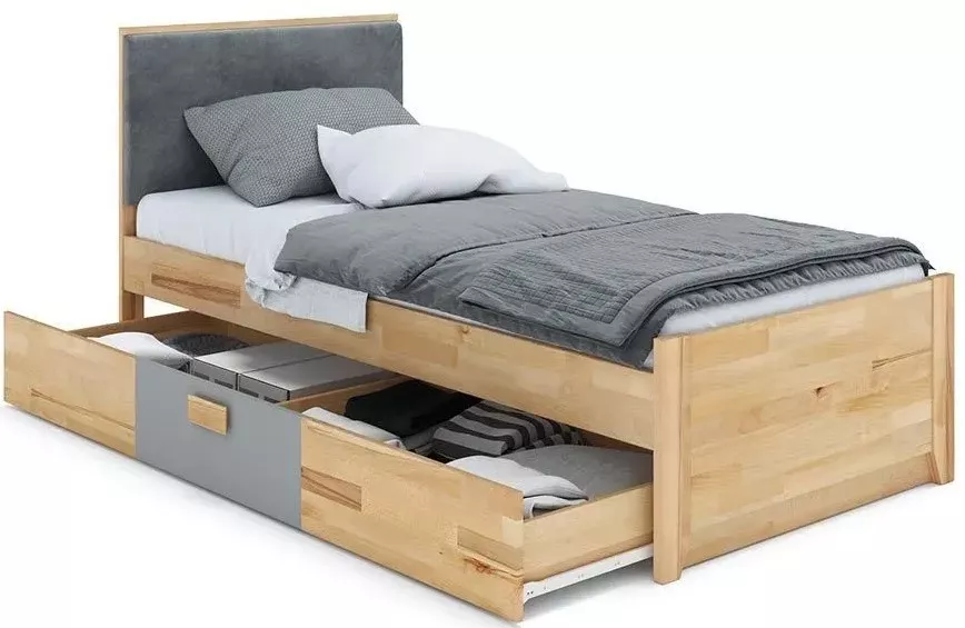 Деревянная кровать Klen Rainbow, 90 x 200 см без ящика, Dark grey