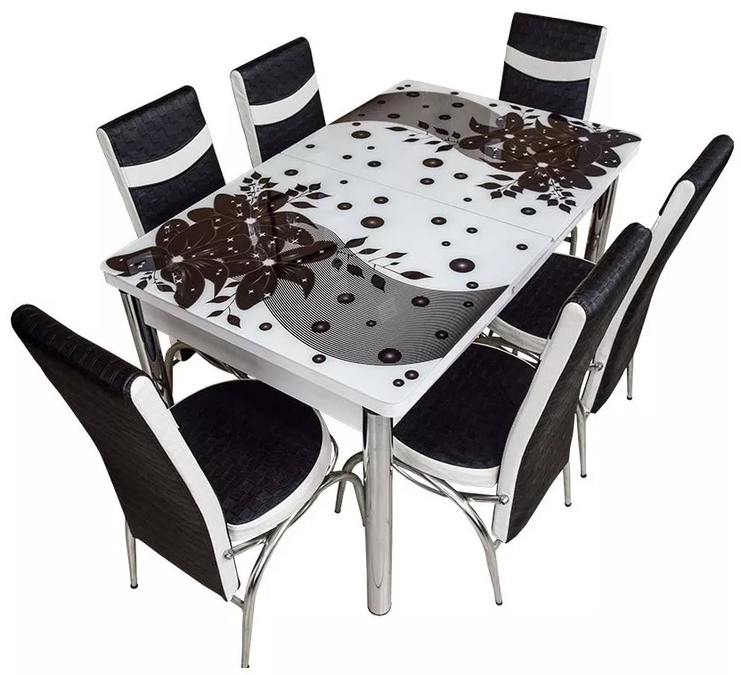 Набор раздвижной стол с 6 стульями Kelebek ES-09, 80x130/170x75