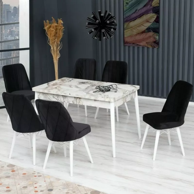 Набор раздвижной стол с 6 стульями Kelebek ES-603, 80x130/170x75