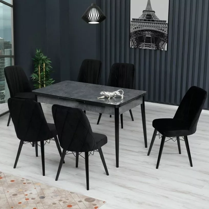 Набор раздвижной стол с 6 стульями Kelebek ES-616, 80x130/170x75