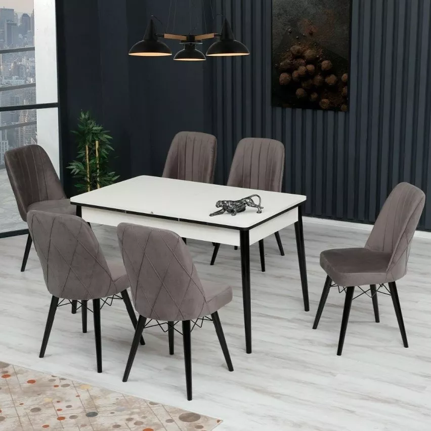 Набор раздвижной стол с 6 стульями Kelebek ES-617, 80x130/170x75