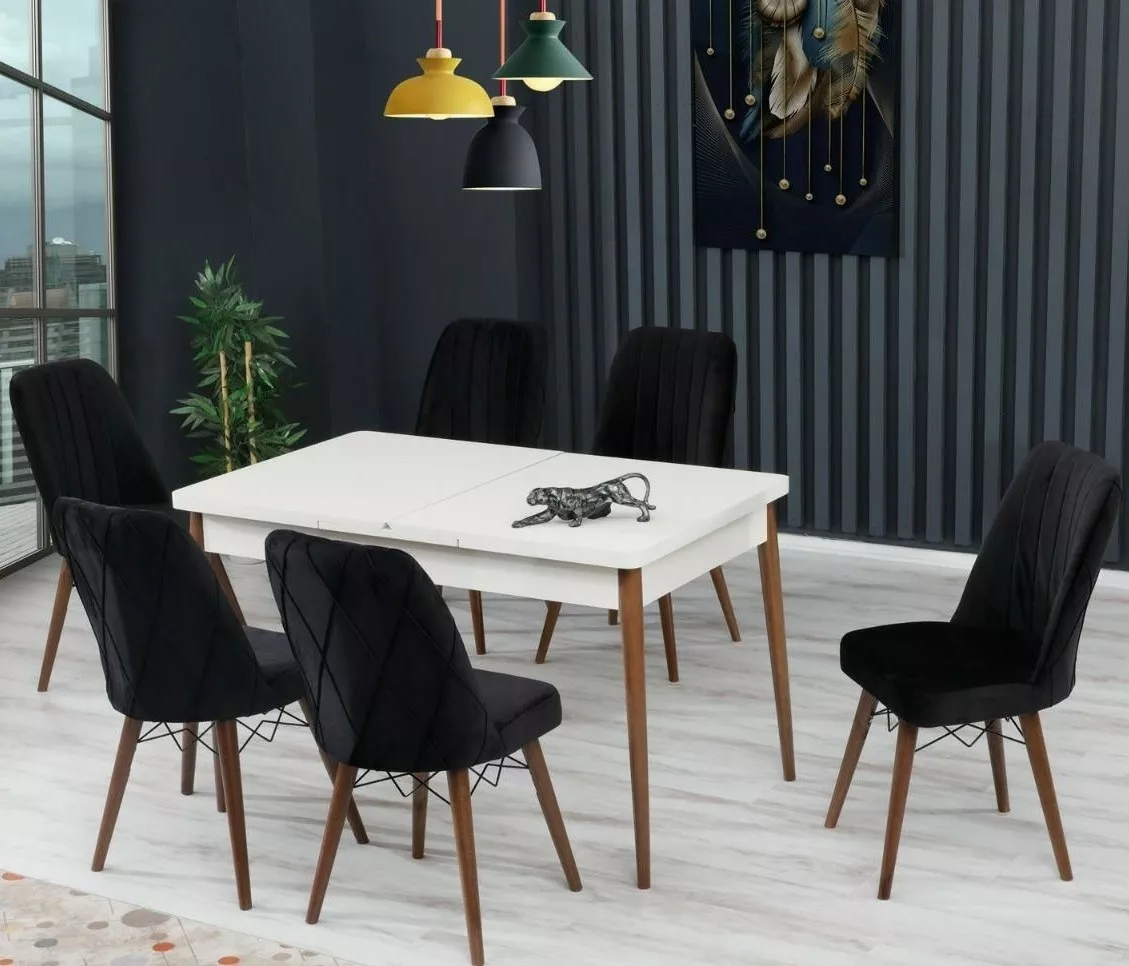 Набор раздвижной стол с 6 стульями Kelebek ES-629, 80x130/170x75