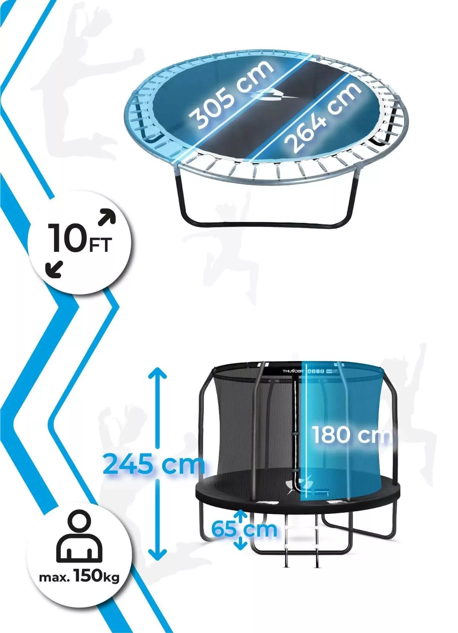 Батут Thunder Inside Elite 10FT, 305 см, внутренняя сетка, Black