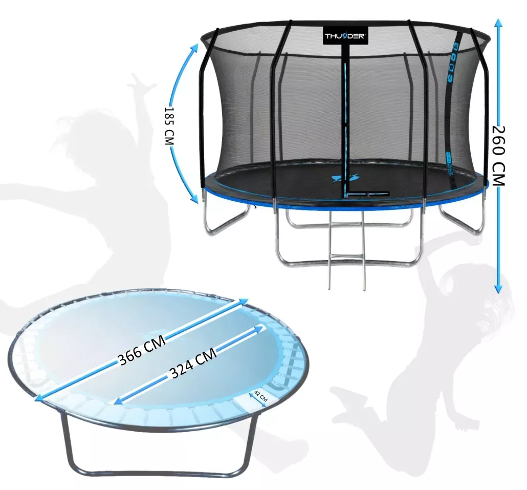 Батут Thunder Inside Elite 12FT, 366 см, внутренняя сетка, Black