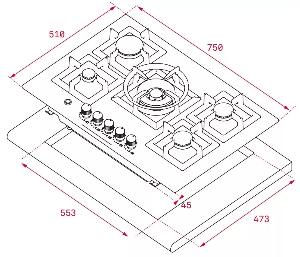 | Общее кол-во конфорок/зон нагрева | 5 |
