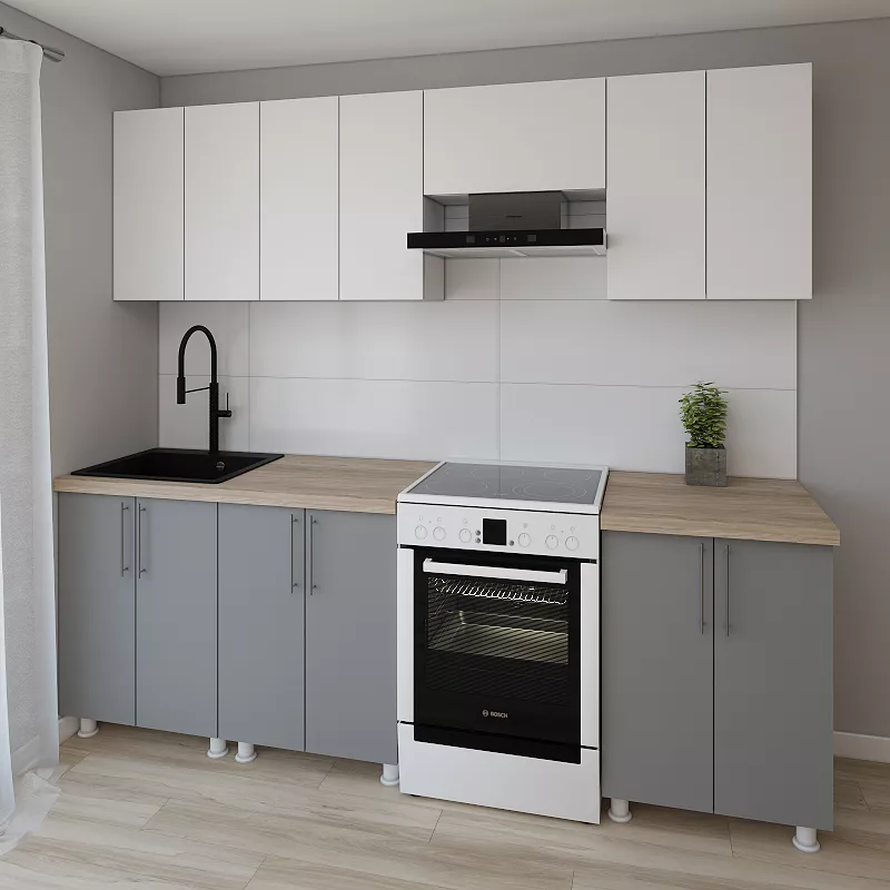 Модульная кухня Smartex K1 2.4 м, ДСП, Белый/Графит