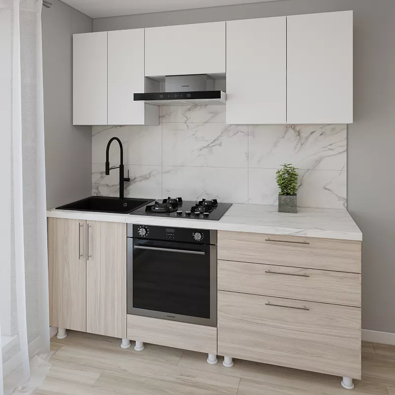 Модульная кухня Smartex K4 2.0 м, ДСП, Белый/Светлый Дуб