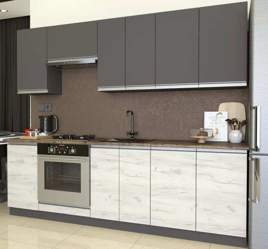 Кухня Yasen Мадера 2.4 м, ДСП, Графит Серый / Дуб Крафт Белый