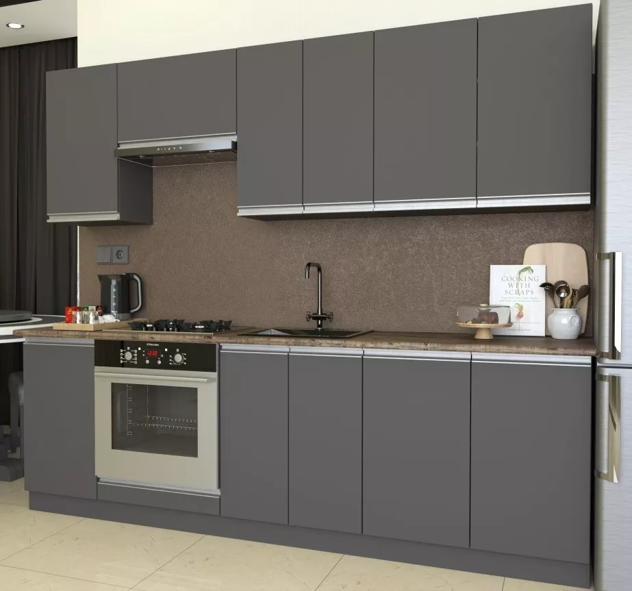 Кухня Yasen Мадера 2.4 м, ДСП, Графит Серый