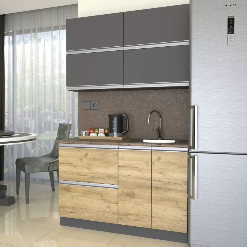 Кухня Yasen Мадера 1.2 м, ДСП, (шкаф под мойку) Графит Серый / Дуб Крафт Золотой