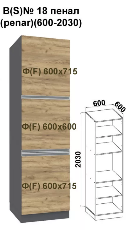 Нижний кухонный шкаф Yasen Мадера №18 (600-2030) левый, ДСП, Дуб крафт золотой