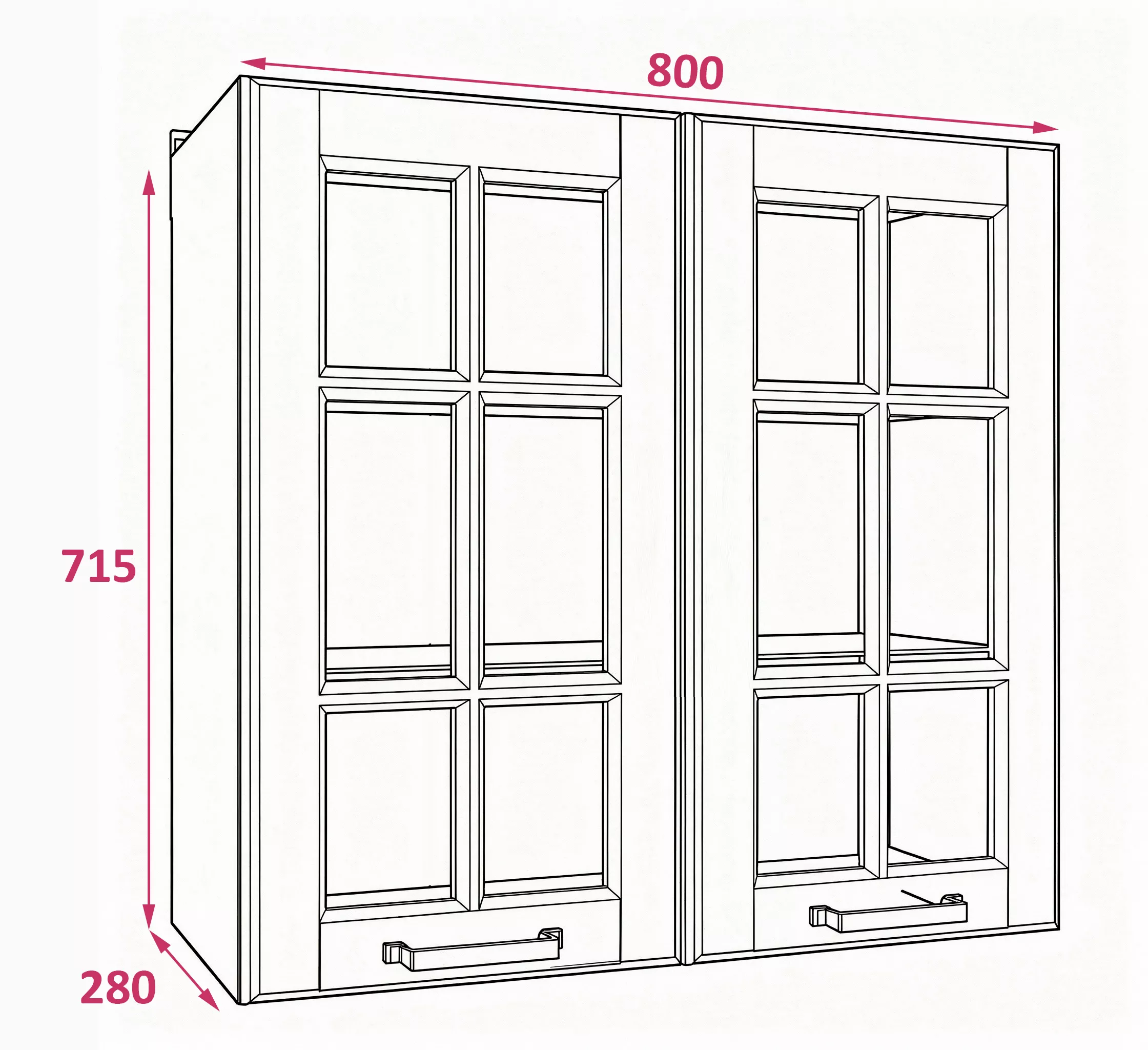 Верхний кухонный шкаф Yasen Сканди №9 (800-715) витрина, МДФ, Белый