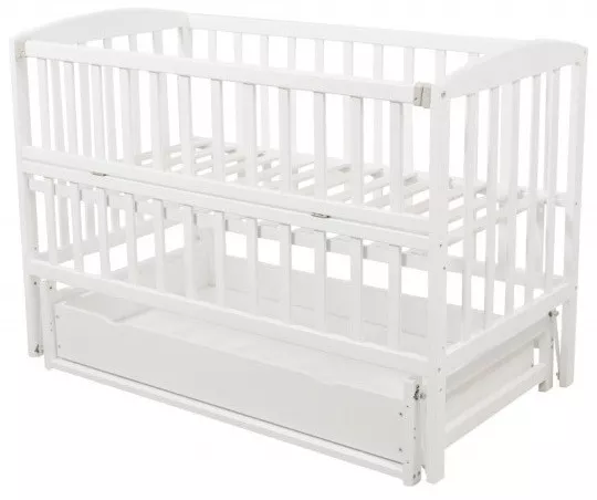 Кроватка Eucalyptus Bimbi Premium Transversal (DS-1301) с ящиком, White