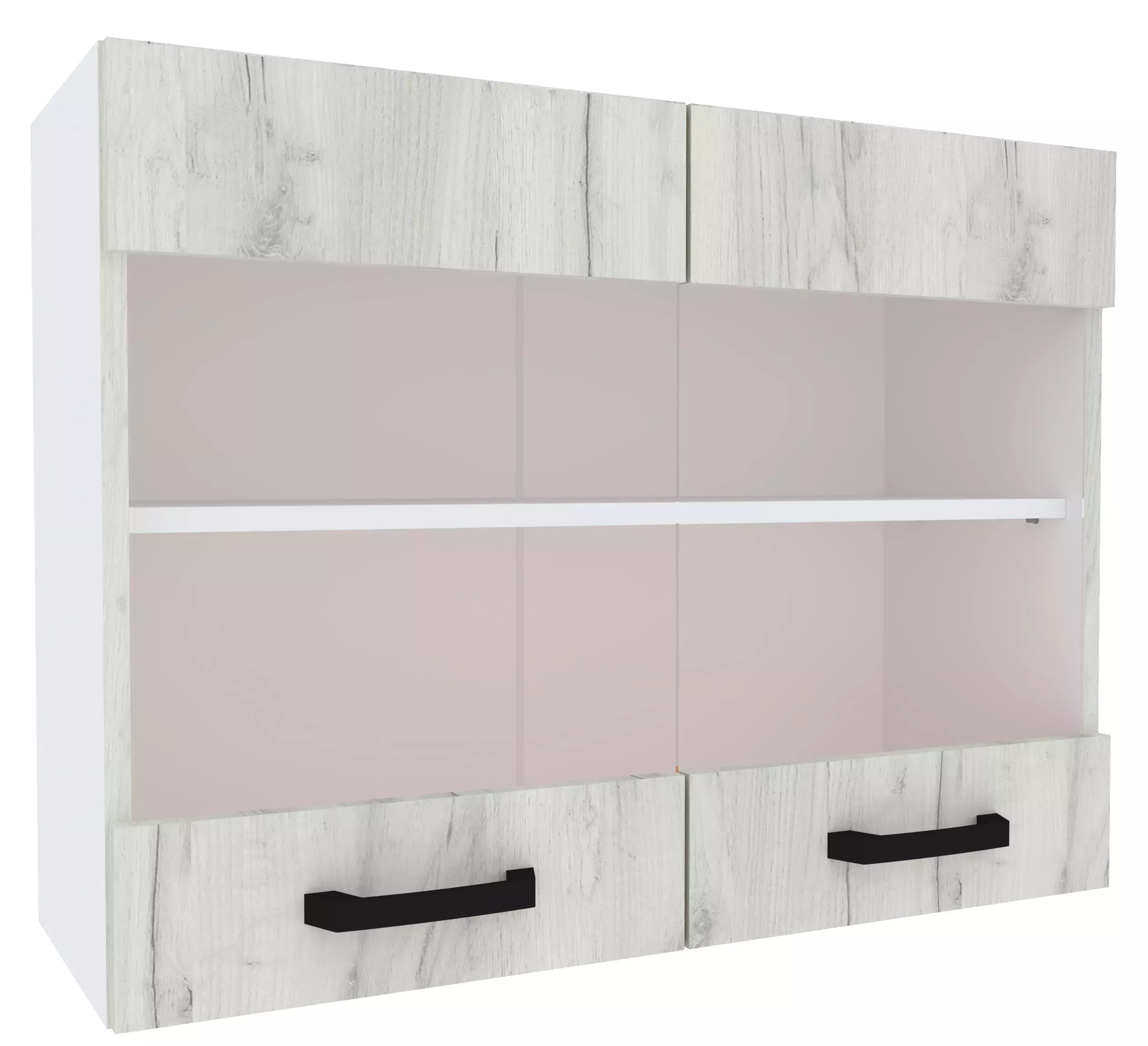 Верхний кухонный шкаф Yasen Саманта 80 витрина, ДСП, Белый/Дуб крафт белый
