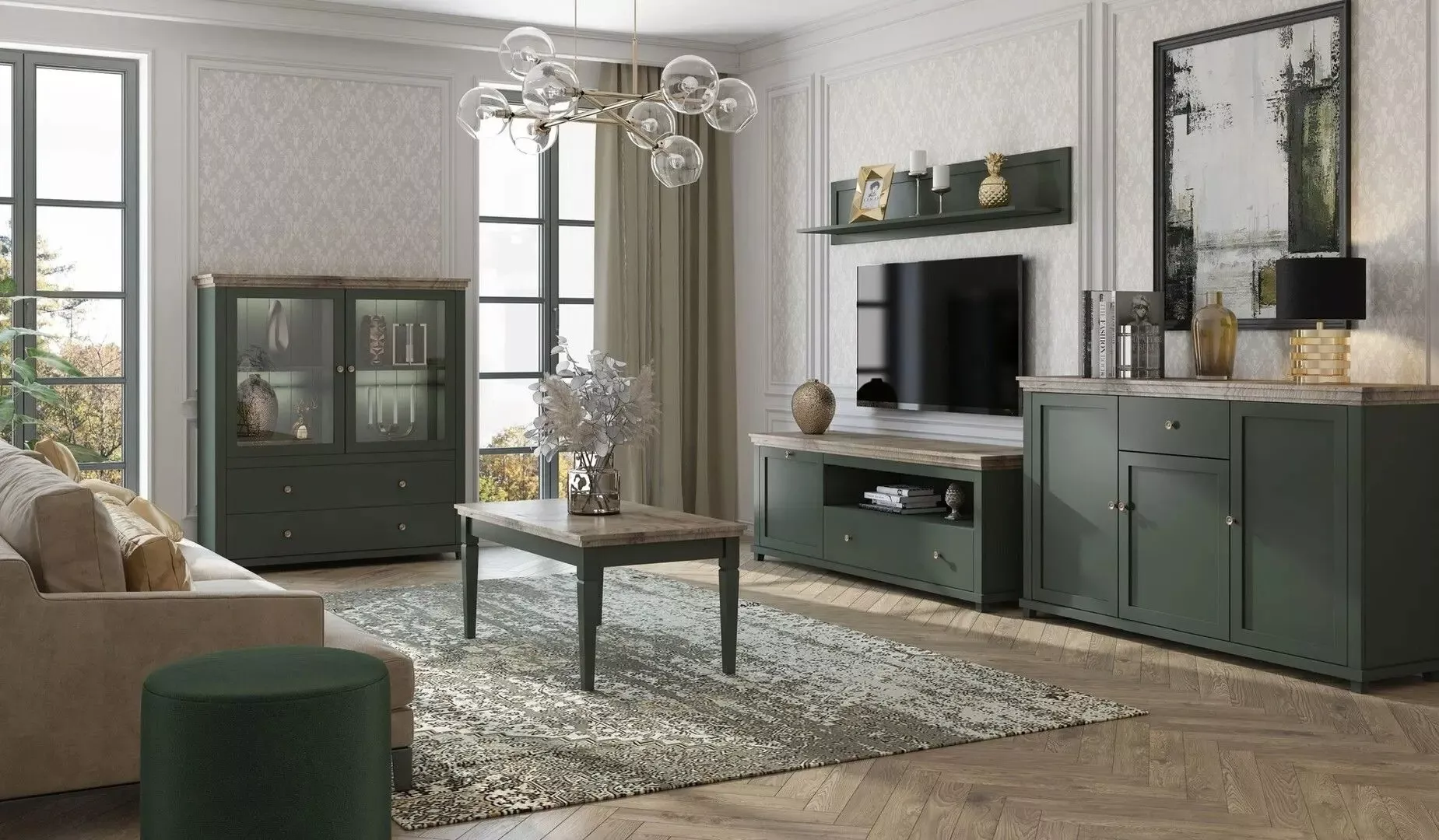 Столик журнальный Helvetia Evora №99, Green/Lefkas Oak