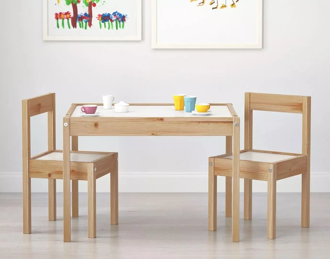 Набор стол+2 стульчика Ikea Latt (Белый/Сосна)
