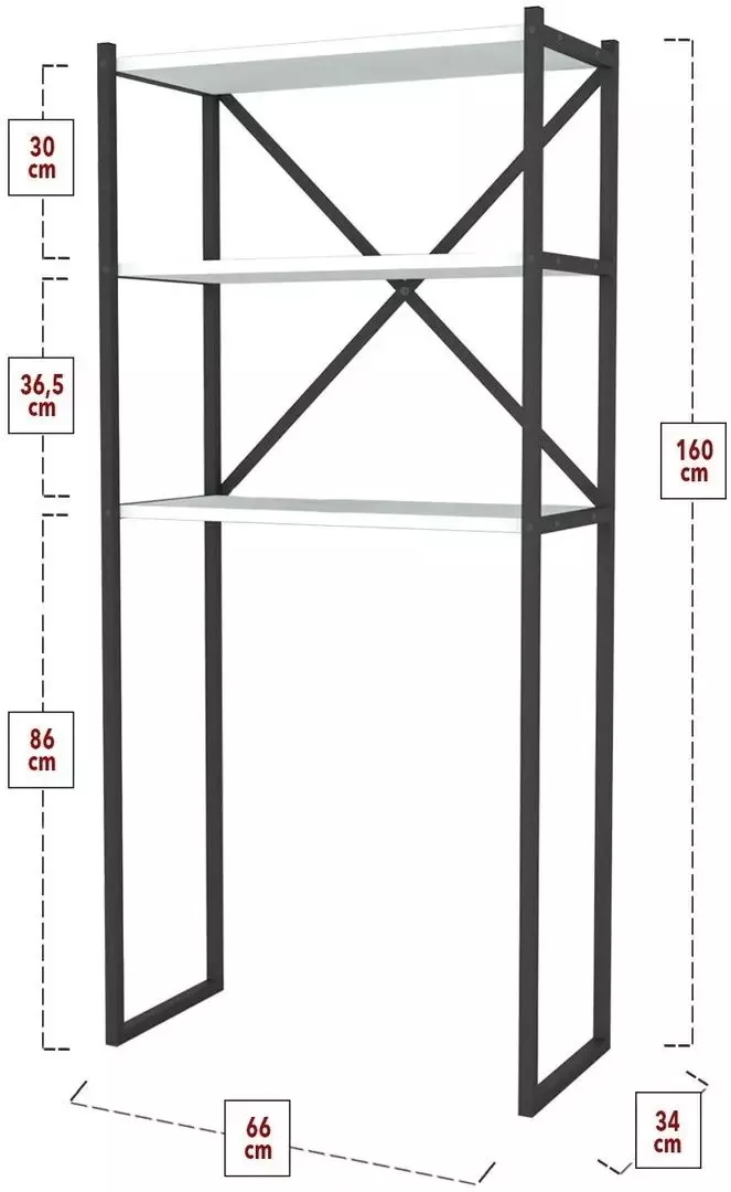 Стеллаж для стиральной машины Fabulous 66x34x160, White