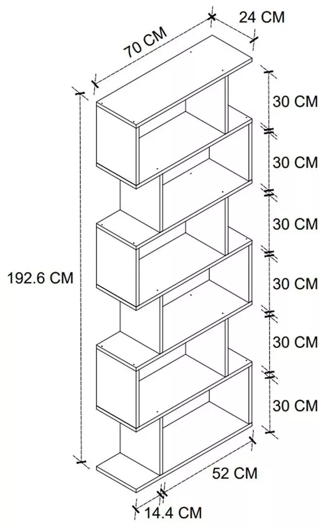 Стеллаж Fabulous Zigzag 6 Shelves, 70 см x 192,6 см x 24 см, Pine