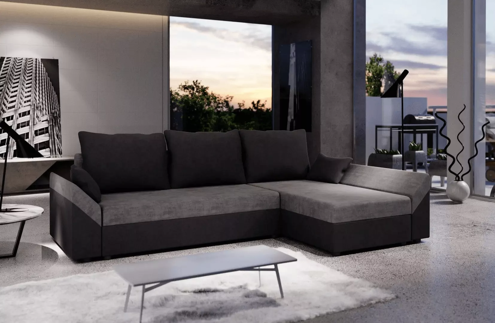 Диван угловой Space Meble Dante L, Mikrofaza 27/Mikrofaza 15 (Gray/Black)