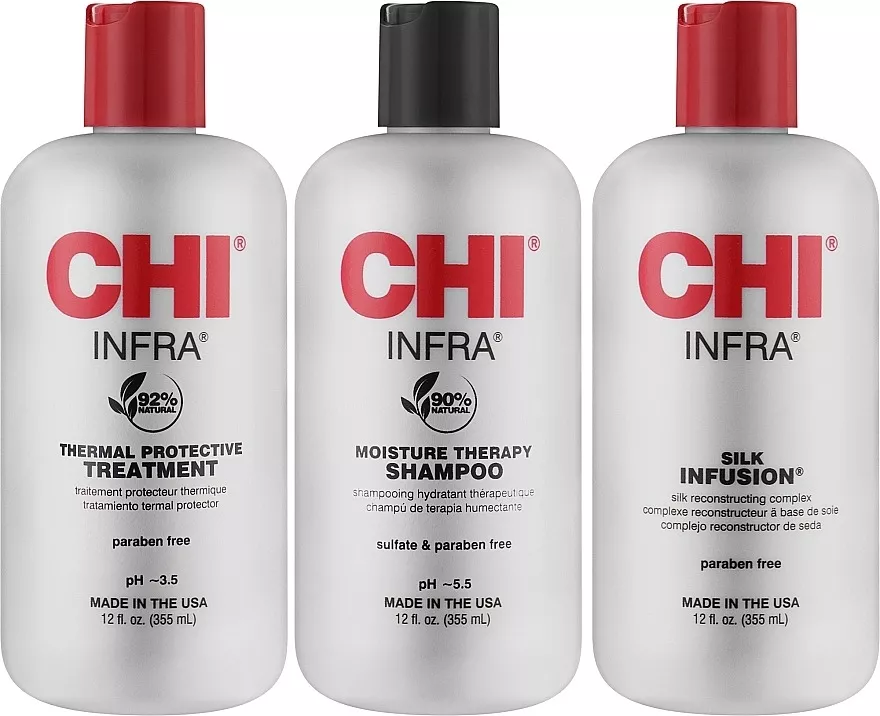 Состав набора | CHI Infra Shampoo, CHI Infra Treatment, CHI Infra Silk Infusion |