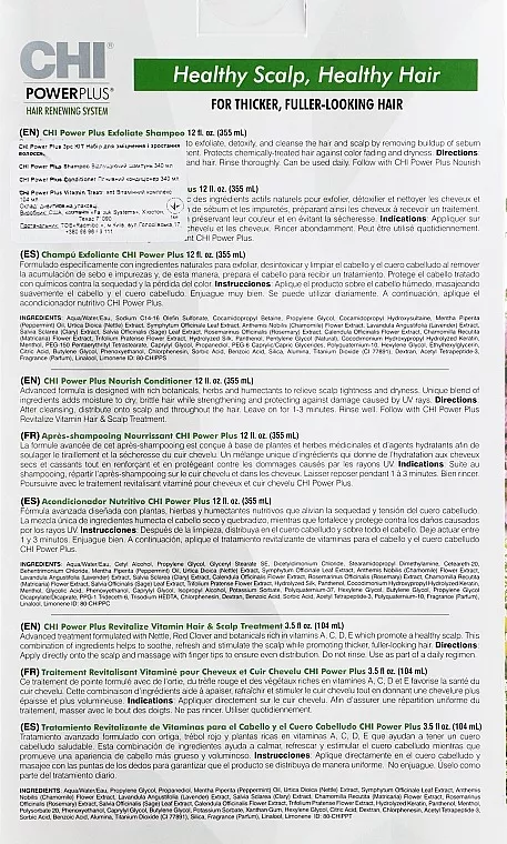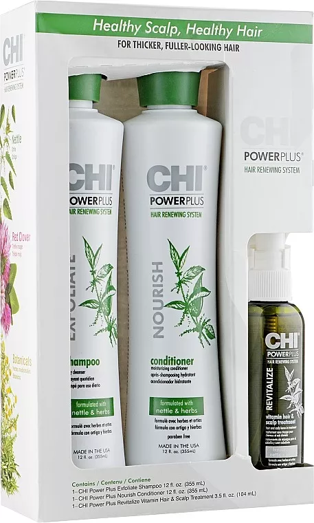 Состав набора | Chi Power Plus Shampoo, Chi Power Plus Vitamin Treatment, Chi Power Plus Conditioner |