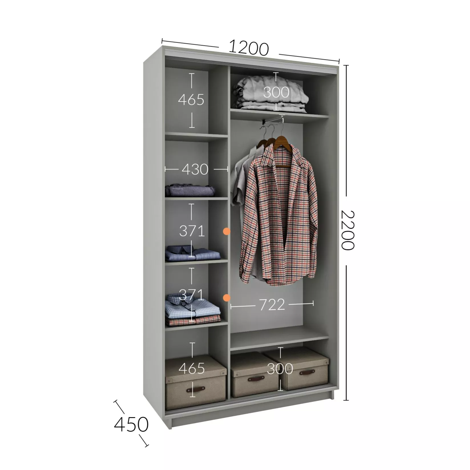 Шкаф-купе Garant Standart, 120x220x45 cm, 2 дв зеркало, Дуб крафт белый
