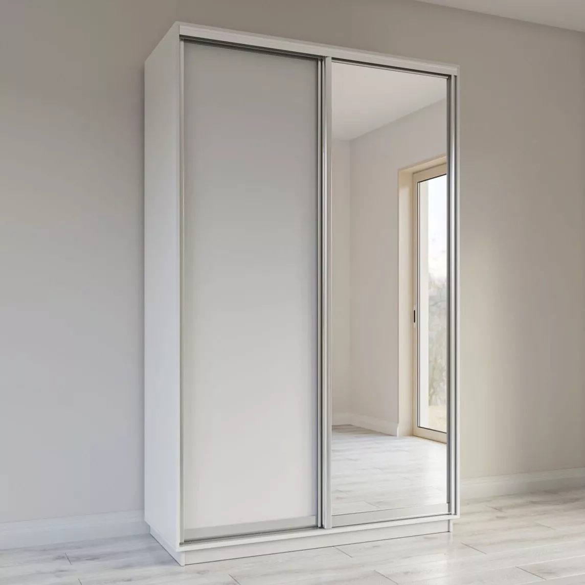 Шкаф-купе Garant Standart, 150x220x60 cm, 1 дв зеркало + 1 дв ДСП, Белый Диамант