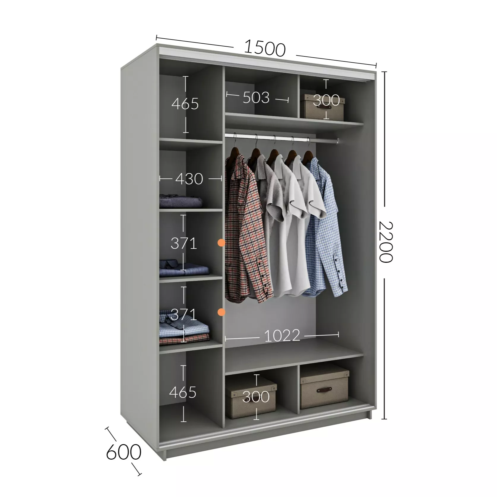 Шкаф-купе Garant Standart, 150x220x60 cm, 1 дв зеркало + 1 дв ДСП, Графит