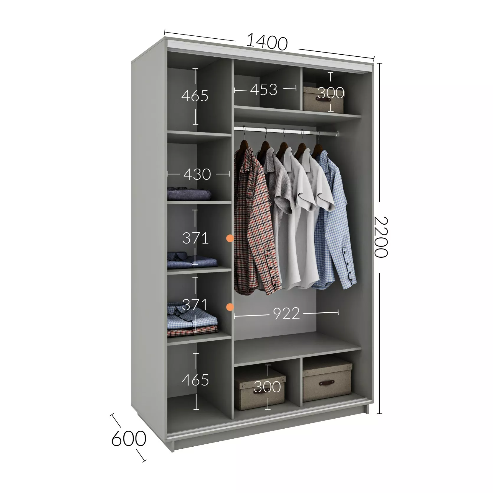 Шкаф-купе Garant Standart, 140x220x60 cm, 1 дв ДСП + 1 дв зеркало, Серая мышка