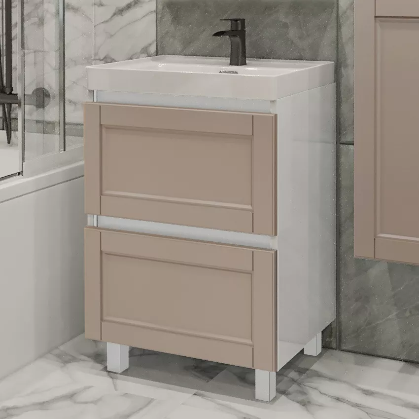 Тумба с раковиной PS ВКДТБ-60(2), 60 см, Капучино-матовый