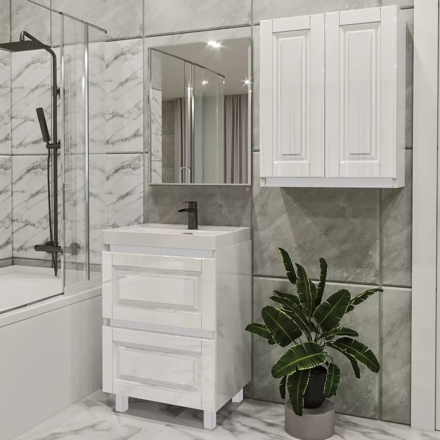 Комплект мебели для ванной PS Lotos 70-60 (кр./ДСП), Белый глянец