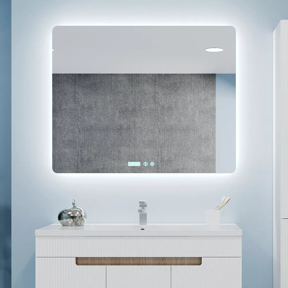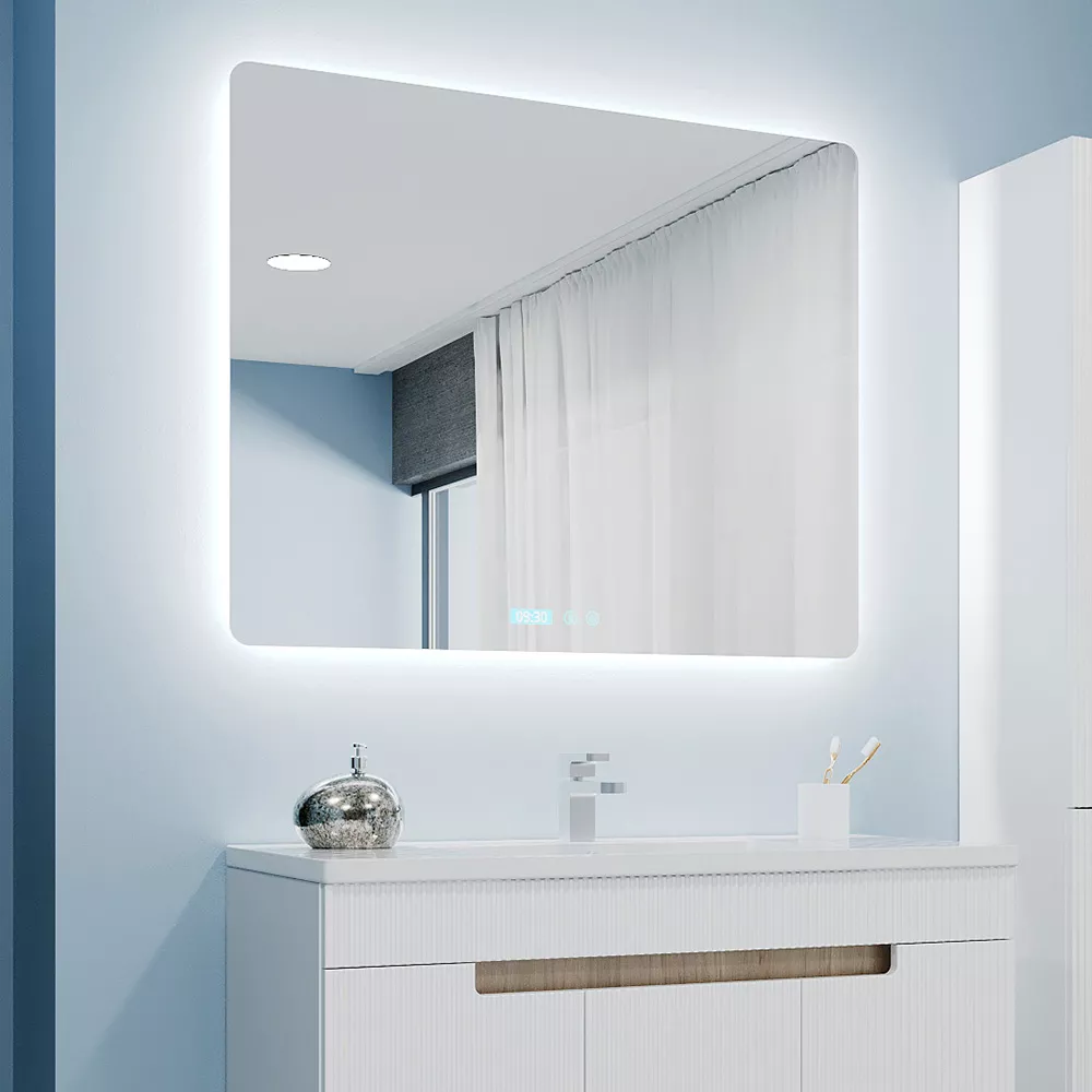Зеркало для ванной Bayro Moon 100x80, LED touch нейтральный c подогревом, часами и термометром (124188)