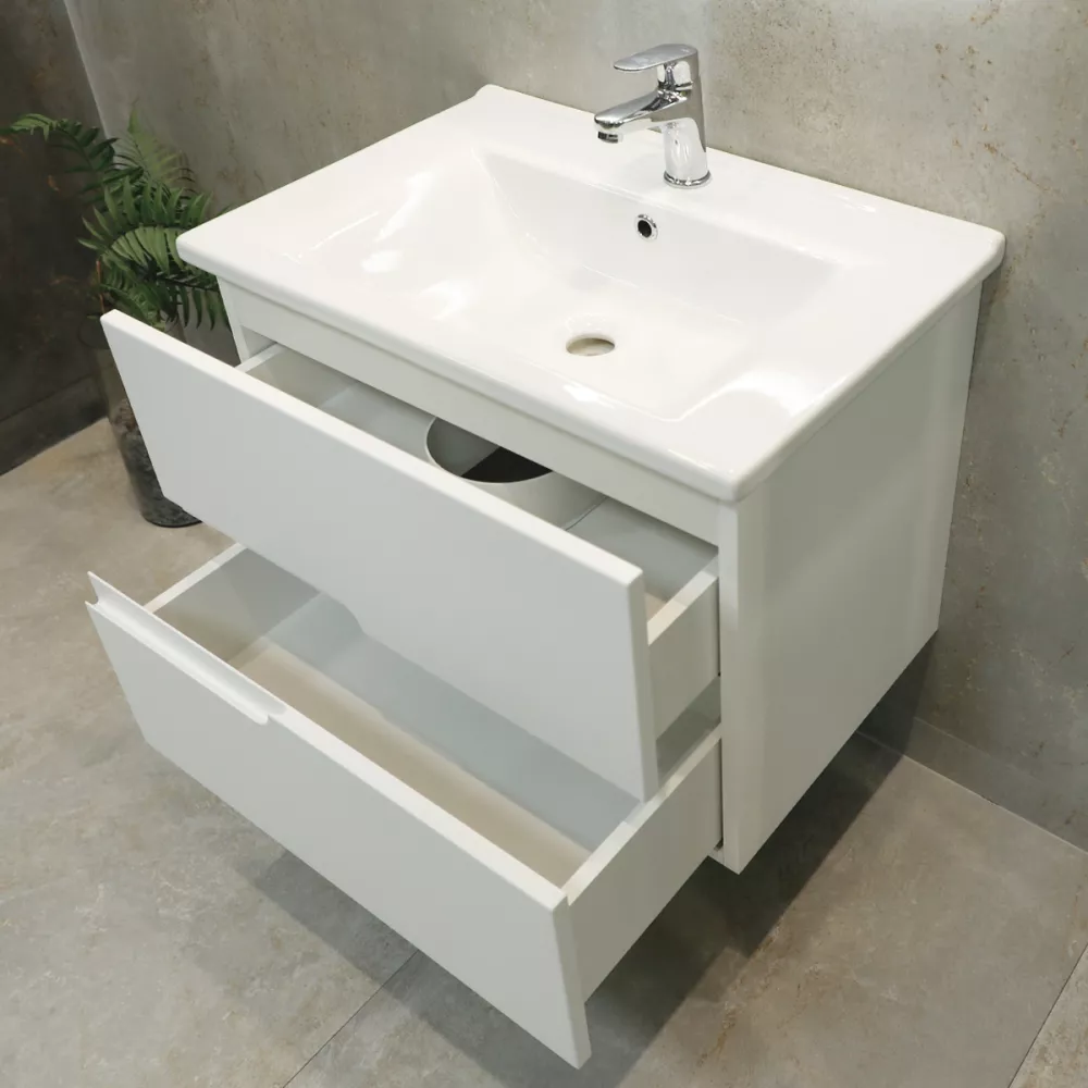 Шкаф для ванной Bayro Sorento подвесной с умывальником Sanovit Soft 650, Белый Мат (115306_10936)
