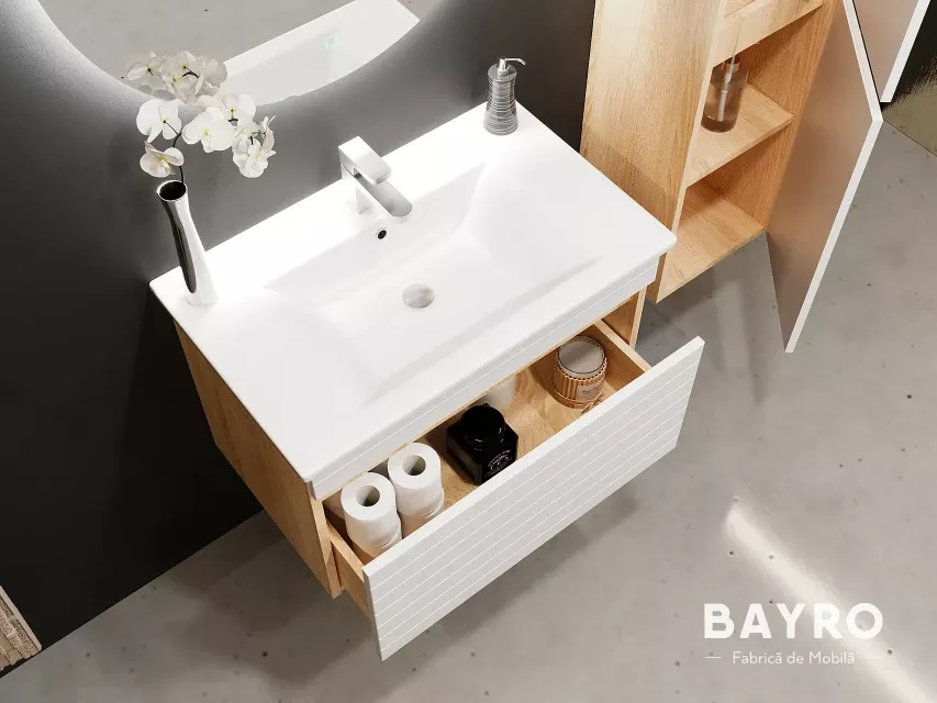| В комплекте | Зеркало LED touch, Подвесной шкаф пенал, Тумба под раковину, Раковина |