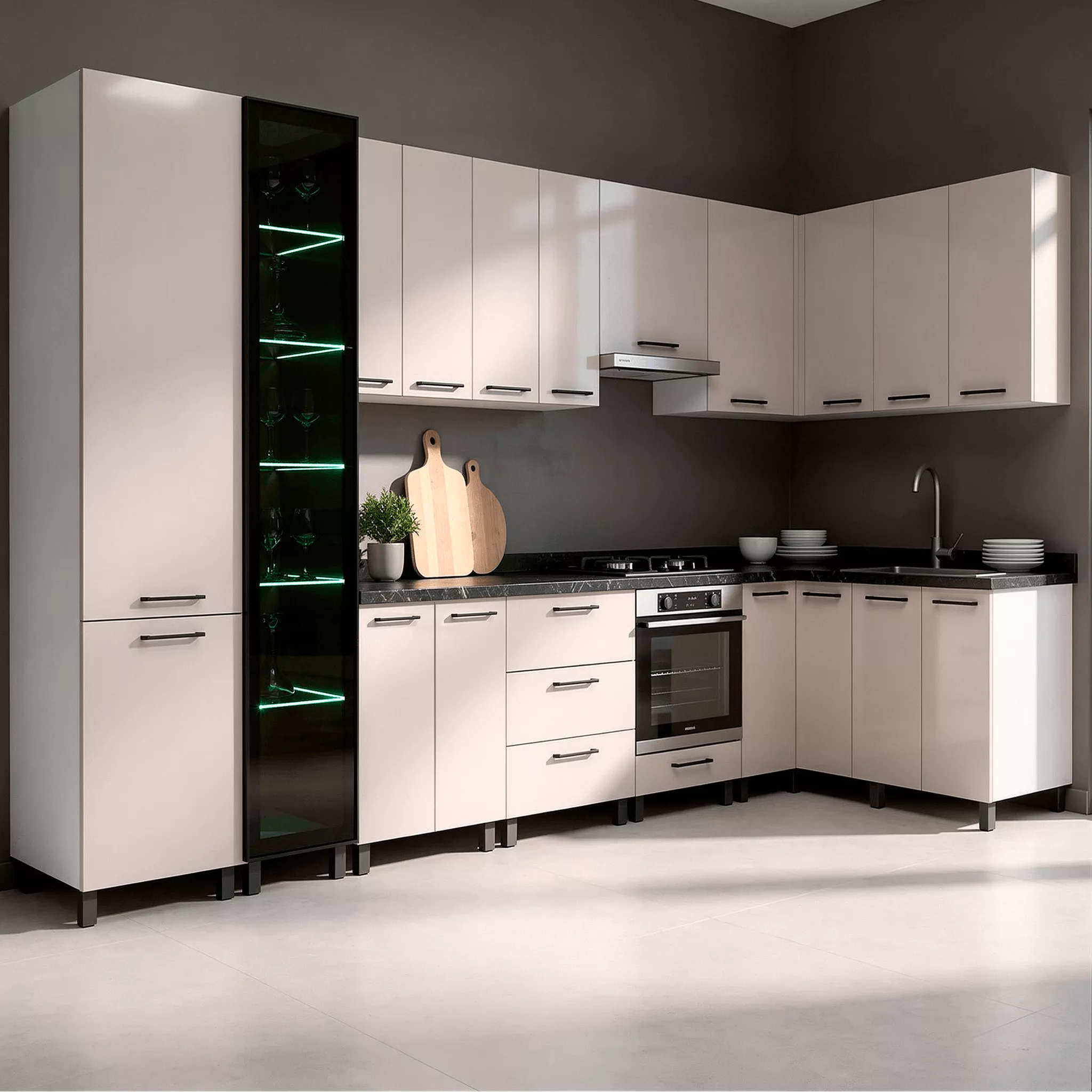 Модульная кухня Ambianta Bonita Uno, МДФ, Белый/Кашемир