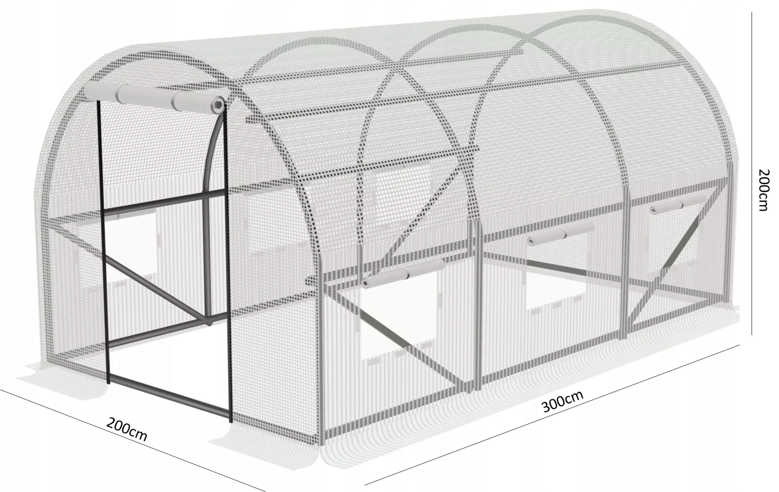 Садовая теплица GardenLine TUN5569 3x2x2m, 140 g/m3, Ø 19 mm, толщина 0.6 mm
